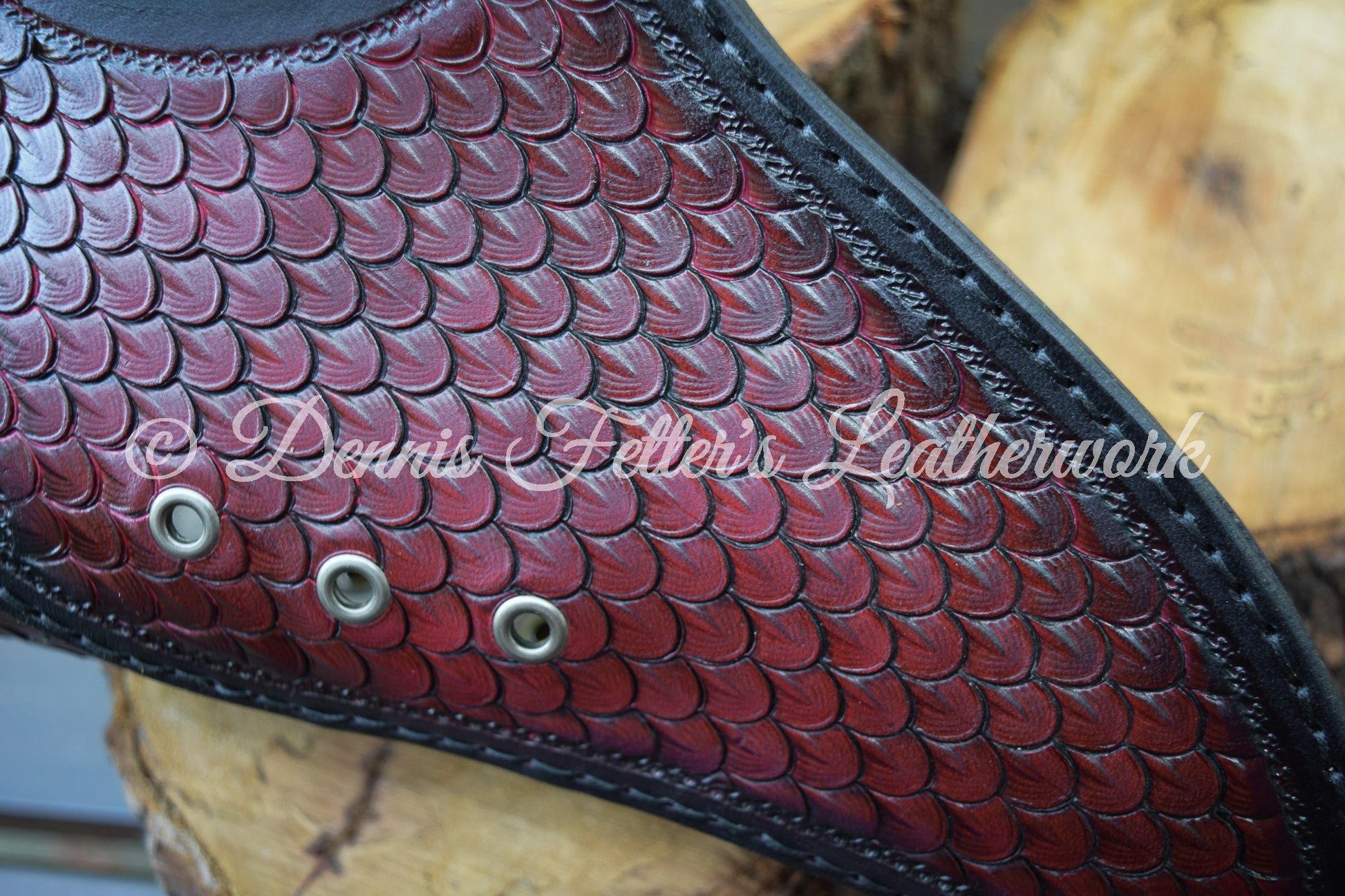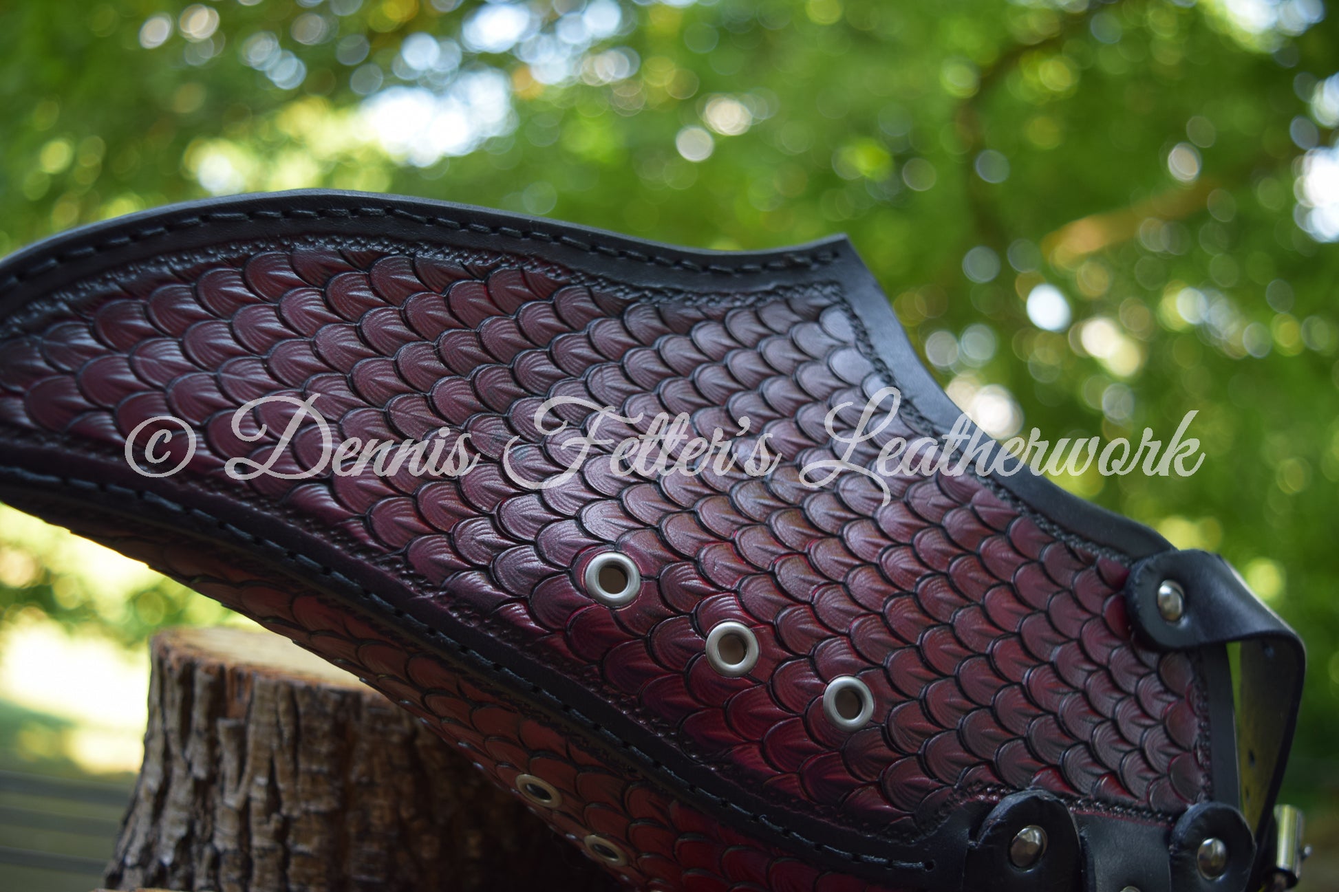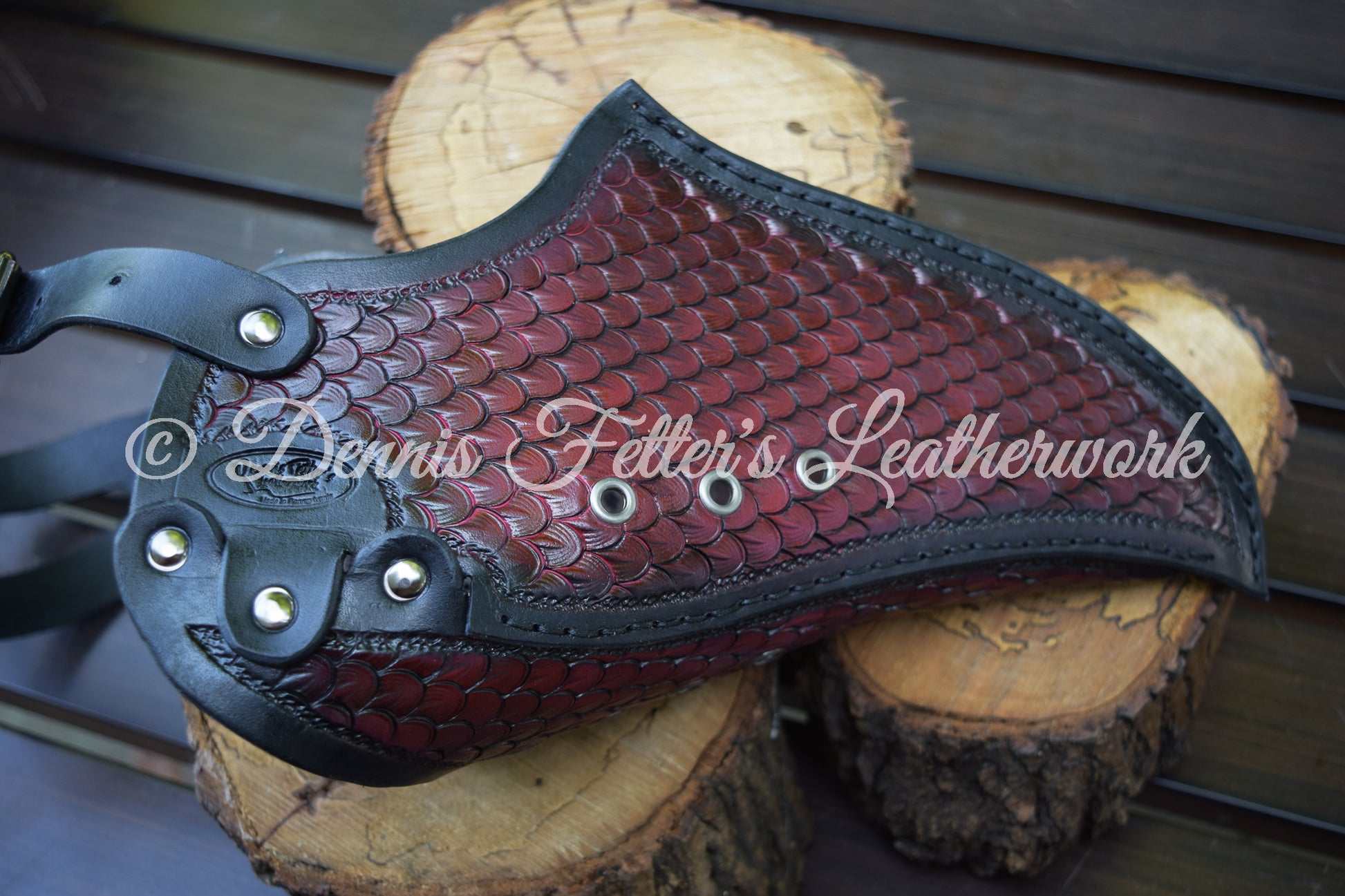 Leather Alchemist mask, hand stamped and hand sewn. Choose colors from Purple, Red. or Blue with a black edge or all brown. This mask is made and shipped from Blairsville, Pennsylvania in USA. Created from 5 - 6 oz. (2 - 2.4 mm) full grain, vegetable tanned leather, dyed and finished with resolene. All our leather products are handmade and hand sewn.