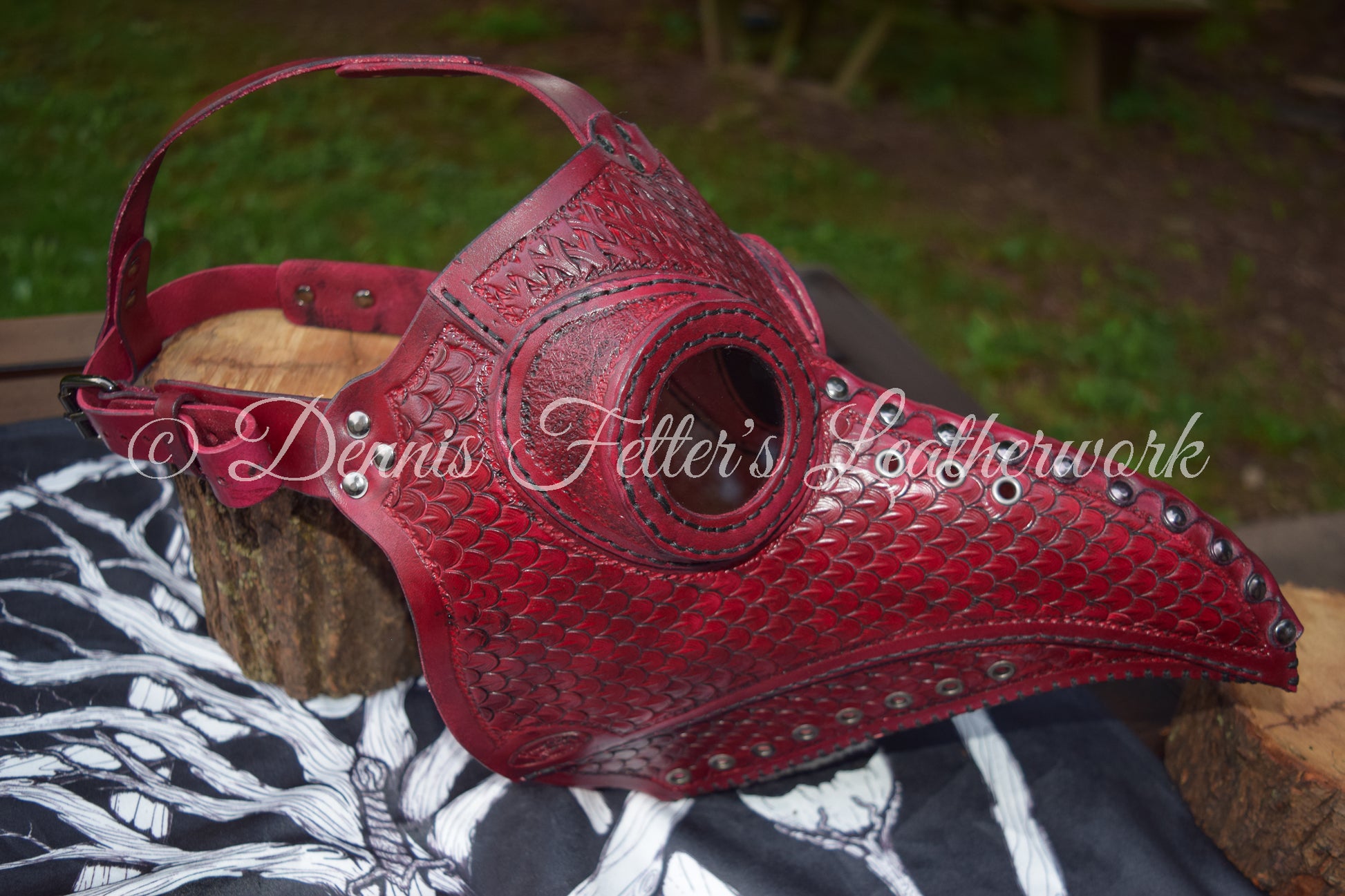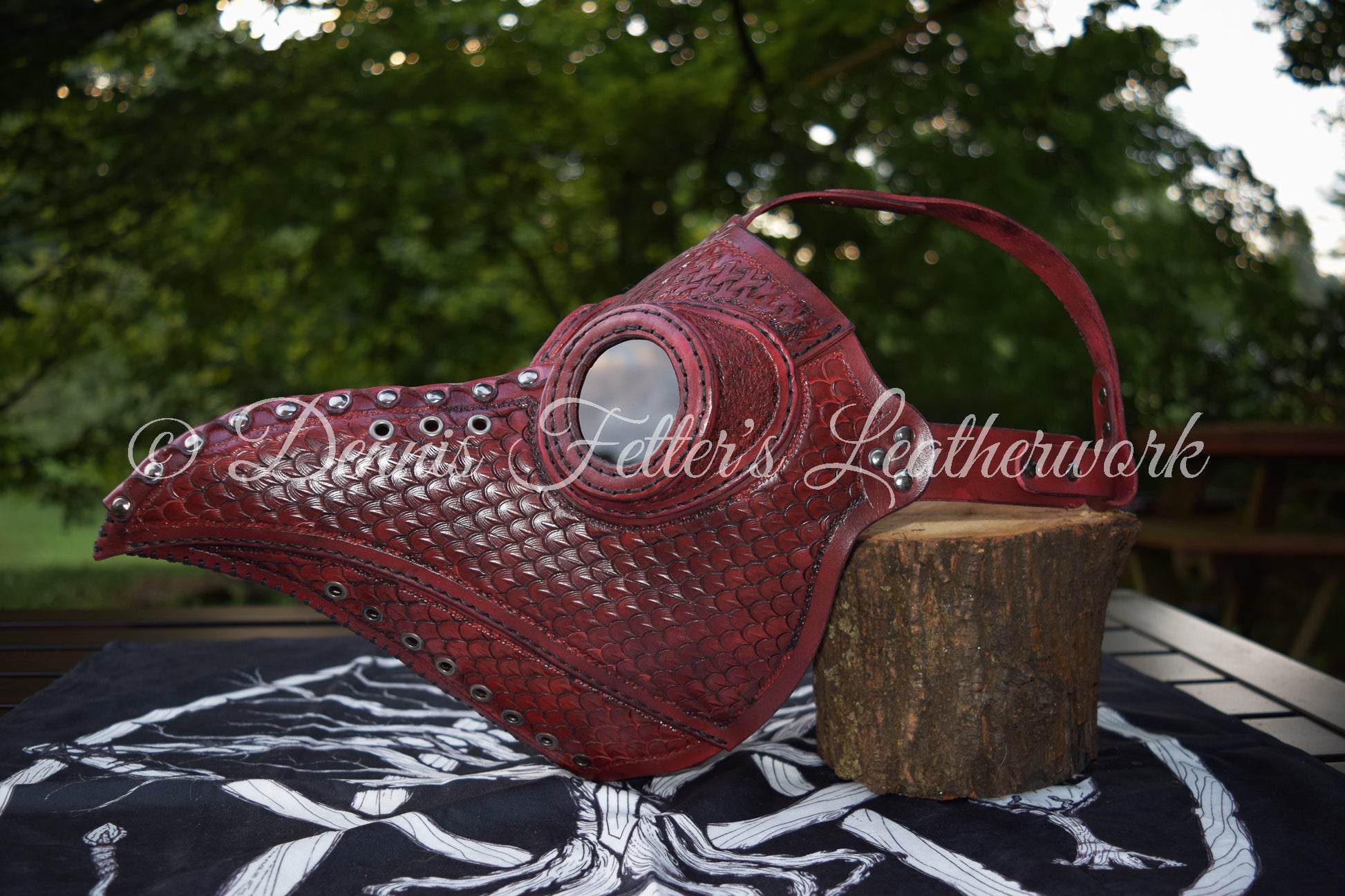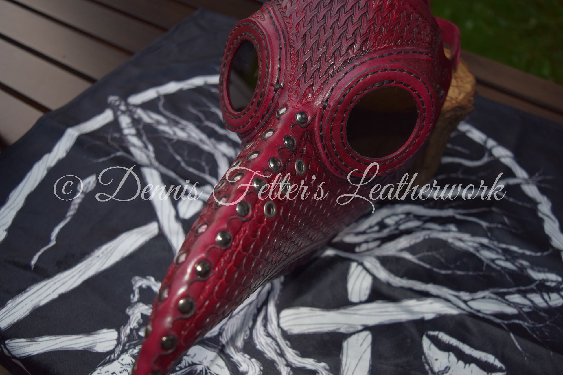 Big Plague Doctor mask Stamped Leather - Oxblood Red
