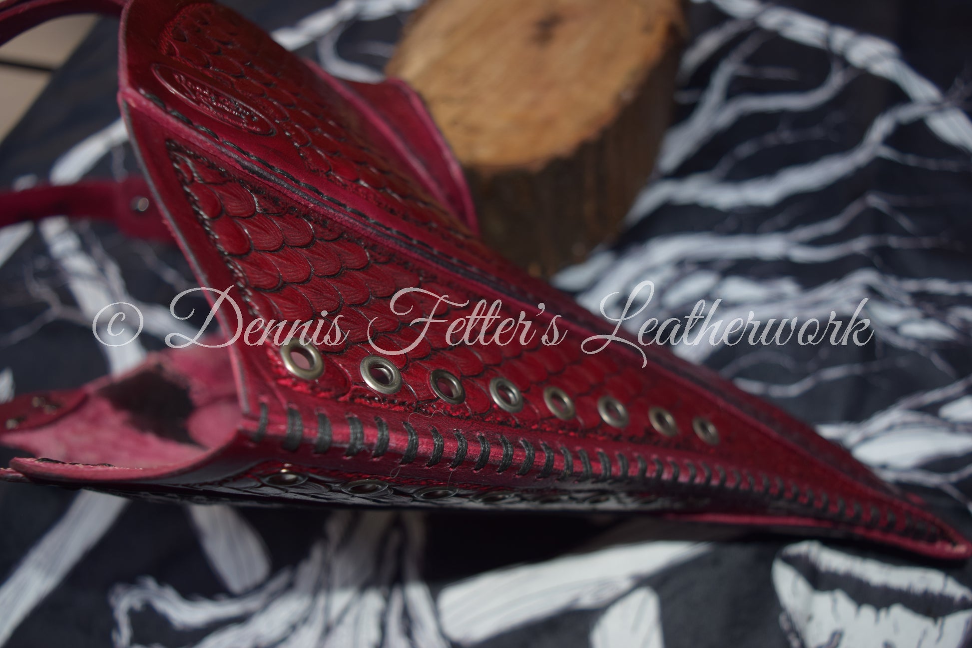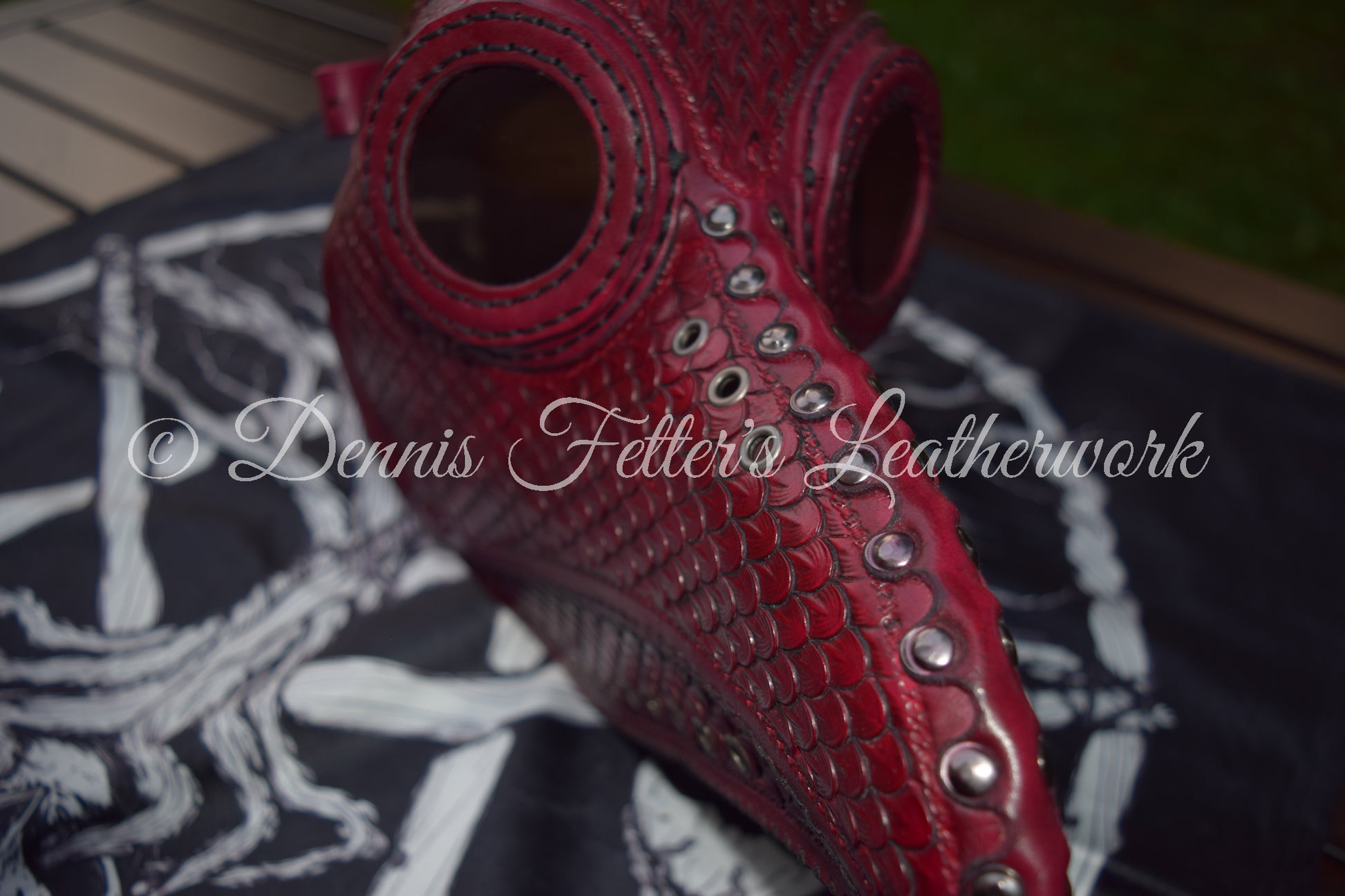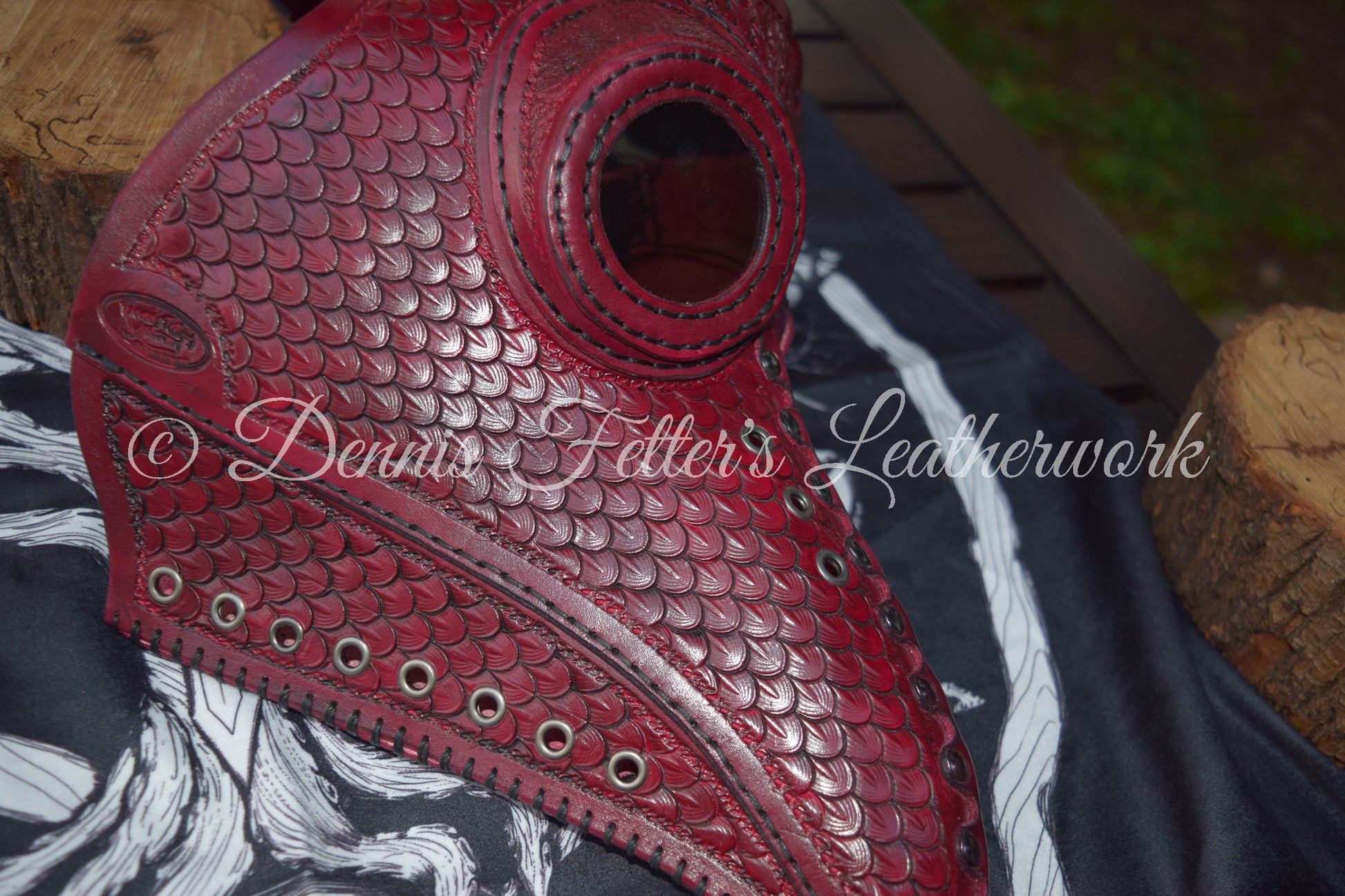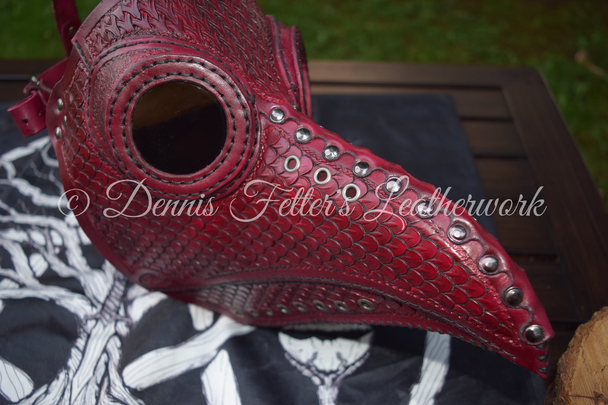 Big Plague Doctor mask Stamped Leather - Oxblood Red