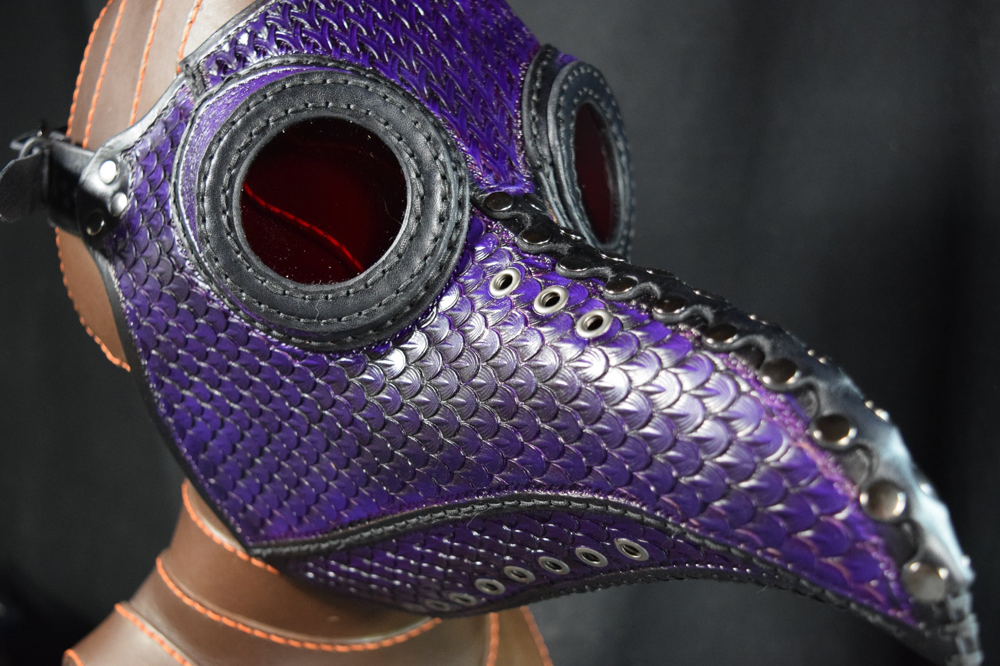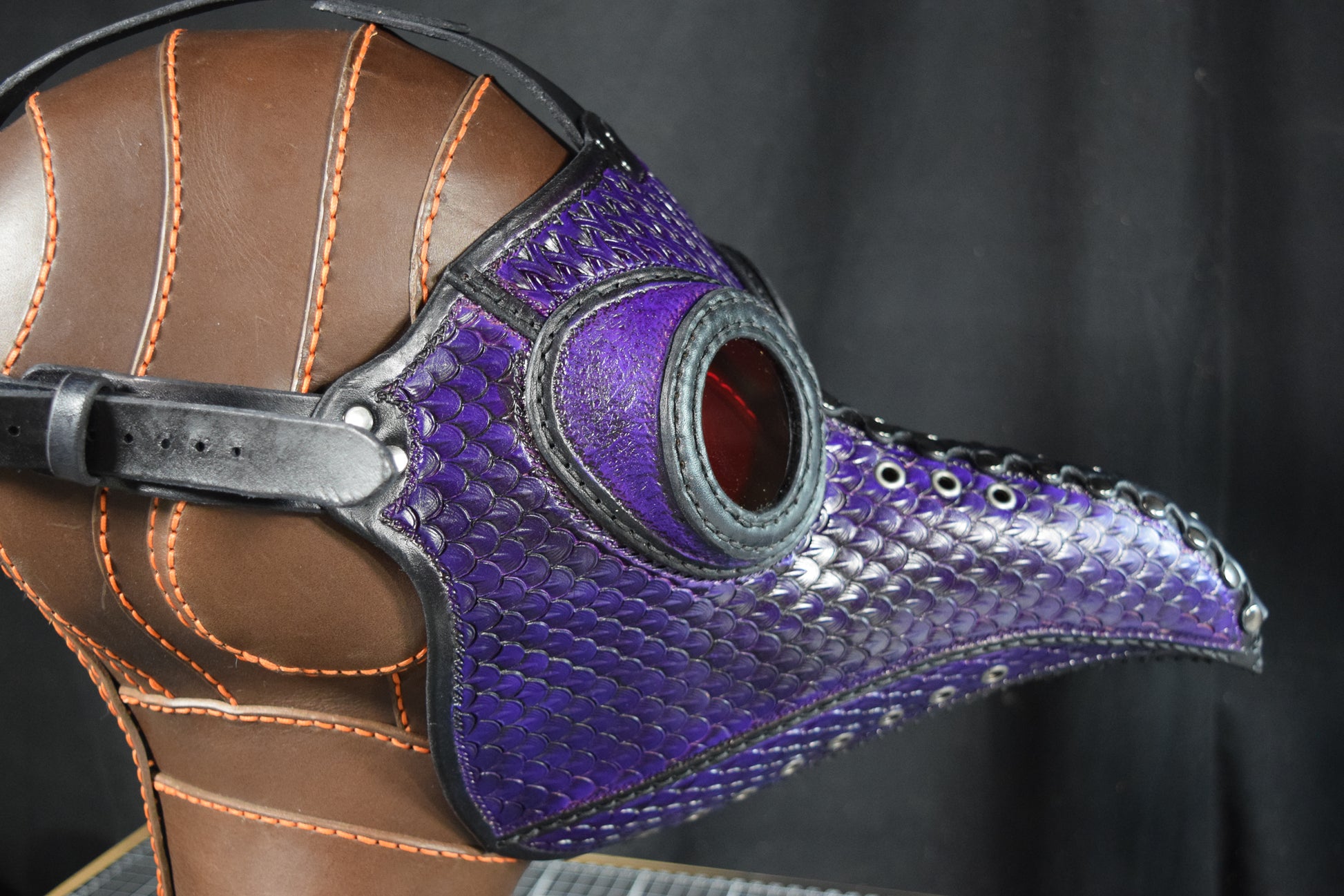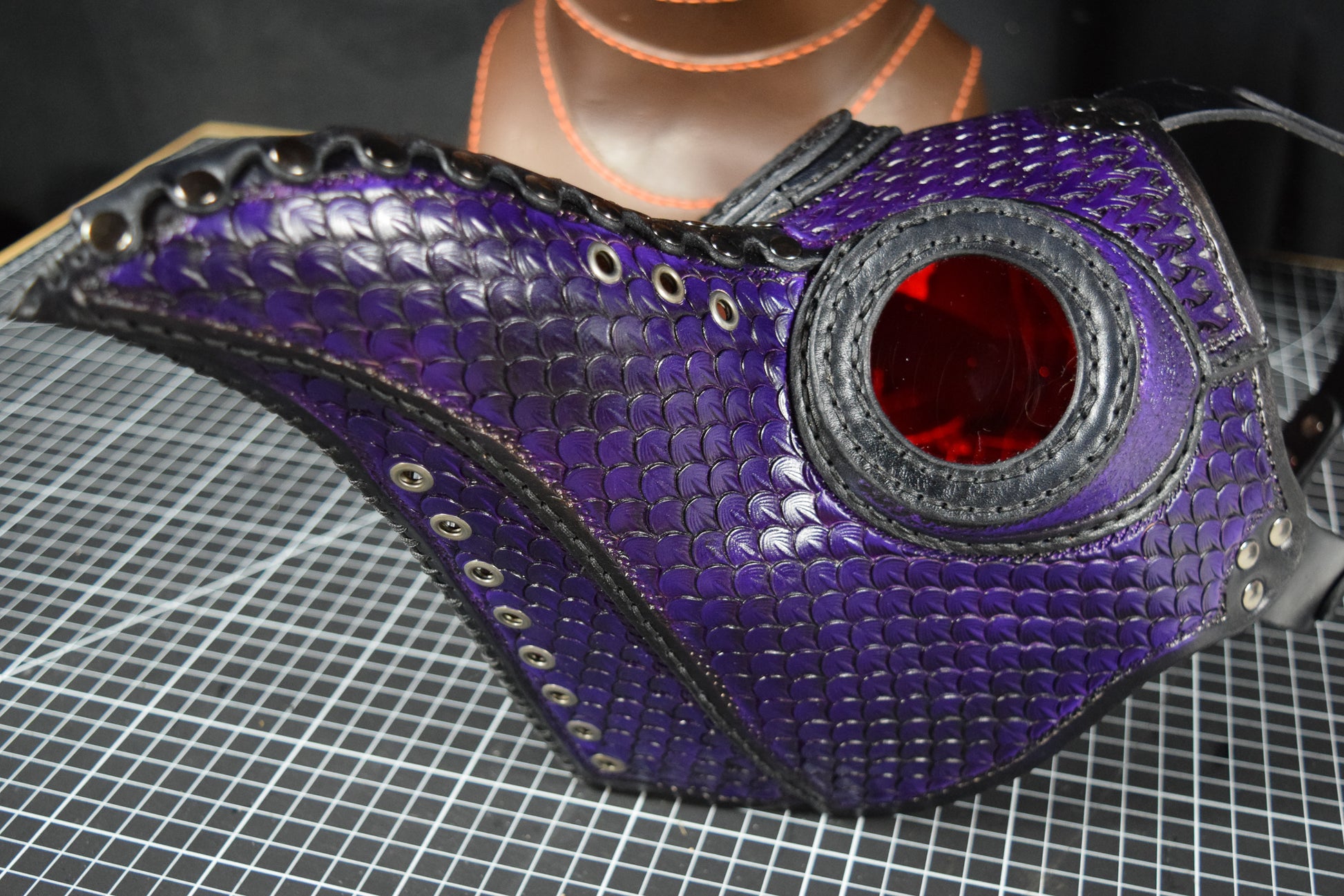 Big Plague Doctor mask Stamped Leather - Purple/Black - Wear over glasses (Choose lens color)