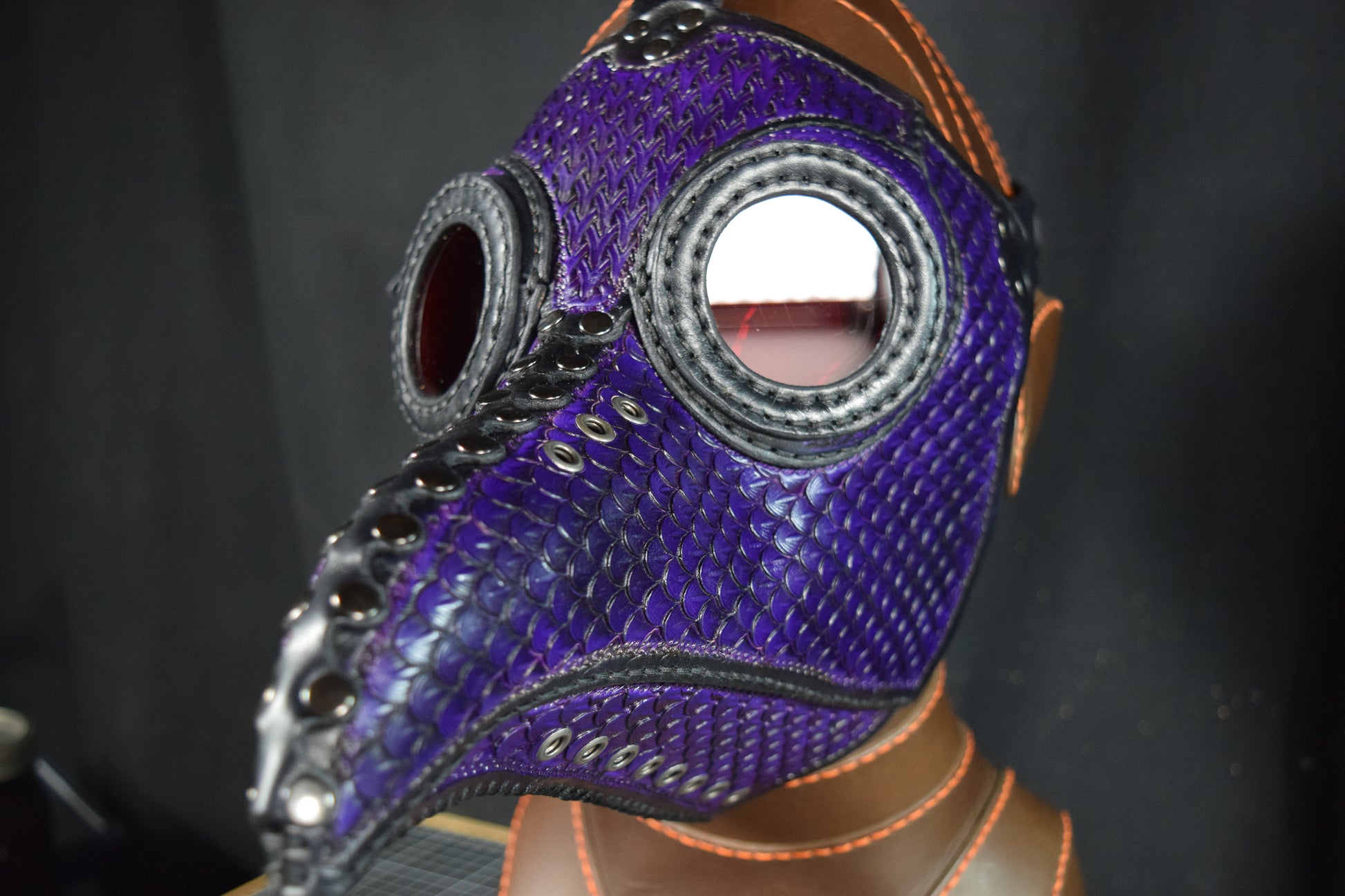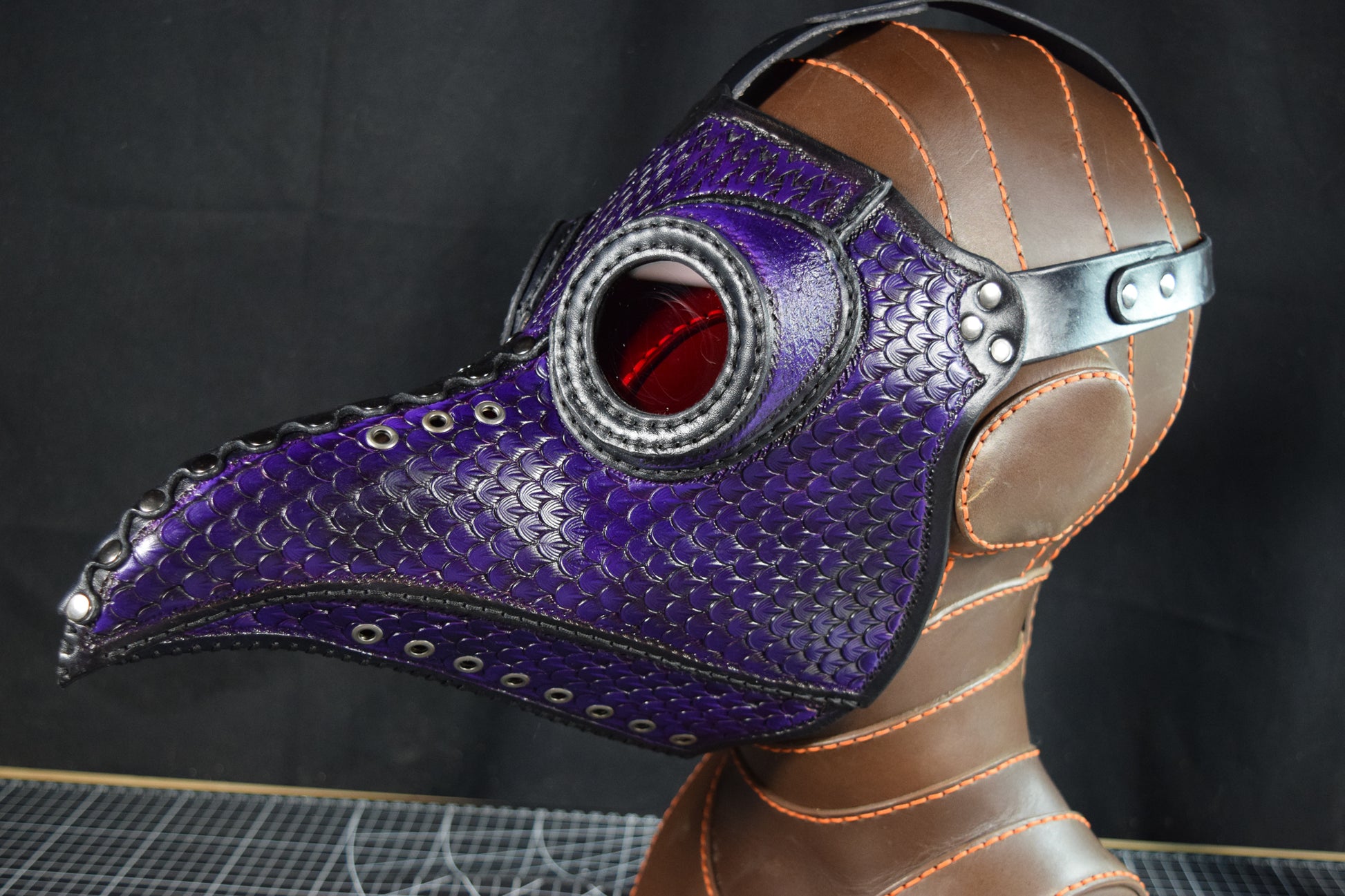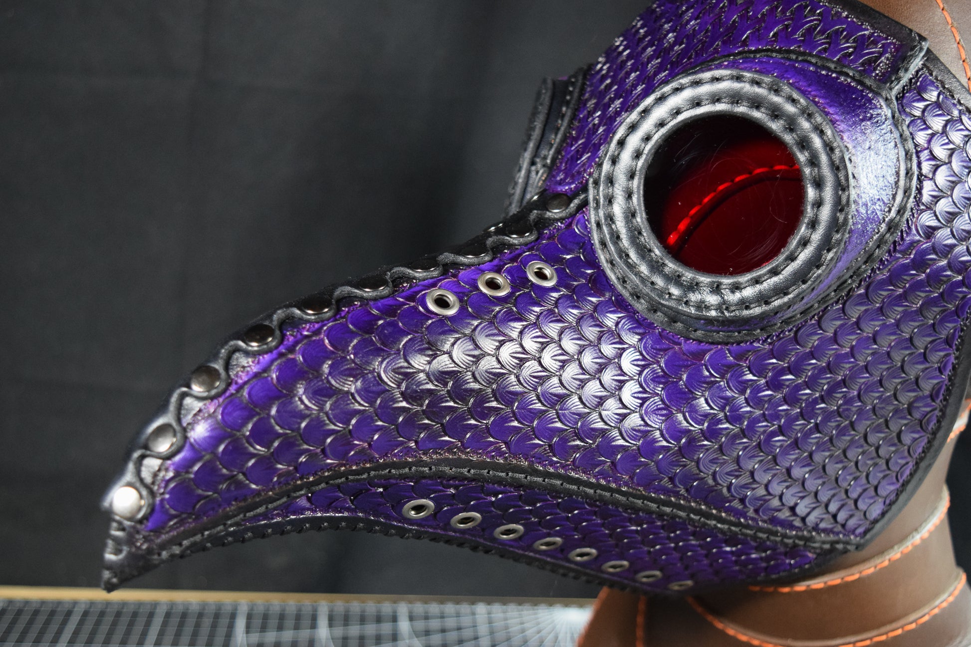 Big Plague Doctor mask Stamped Leather - Purple/Black - Wear over glasses (Choose lens color)