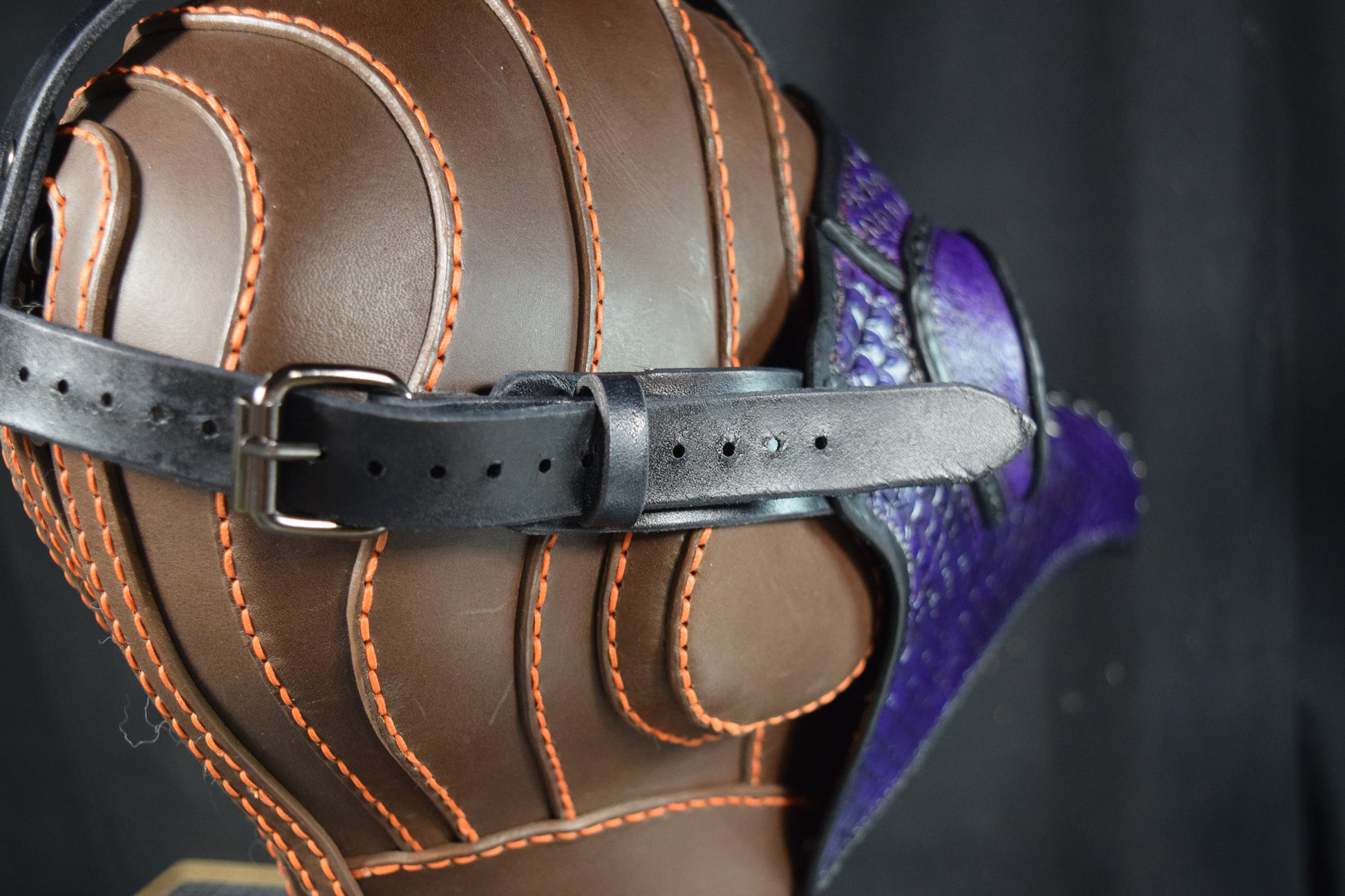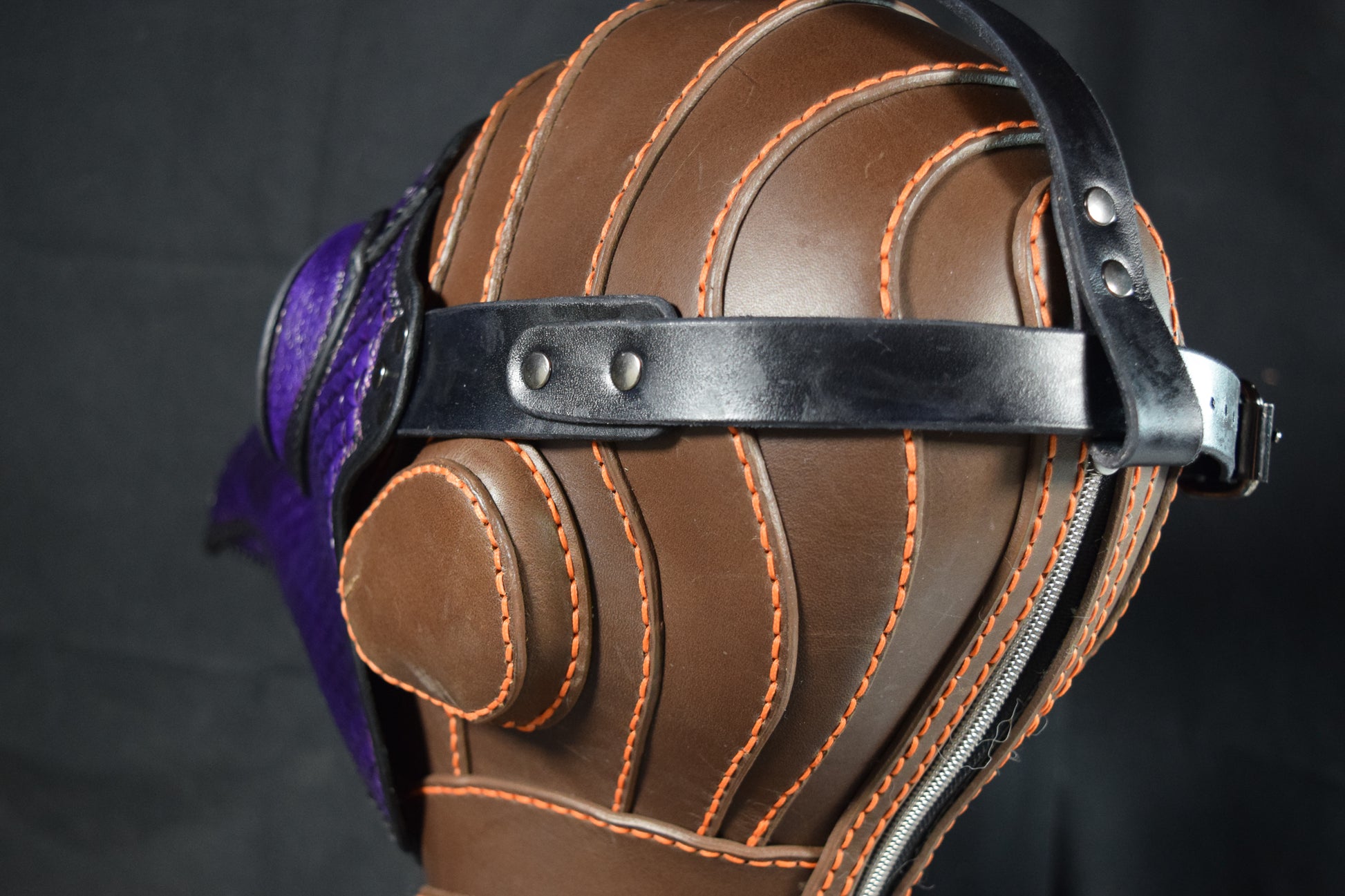 The color of this mask is purple with black trim, every mask is dyed and finished with resolene.