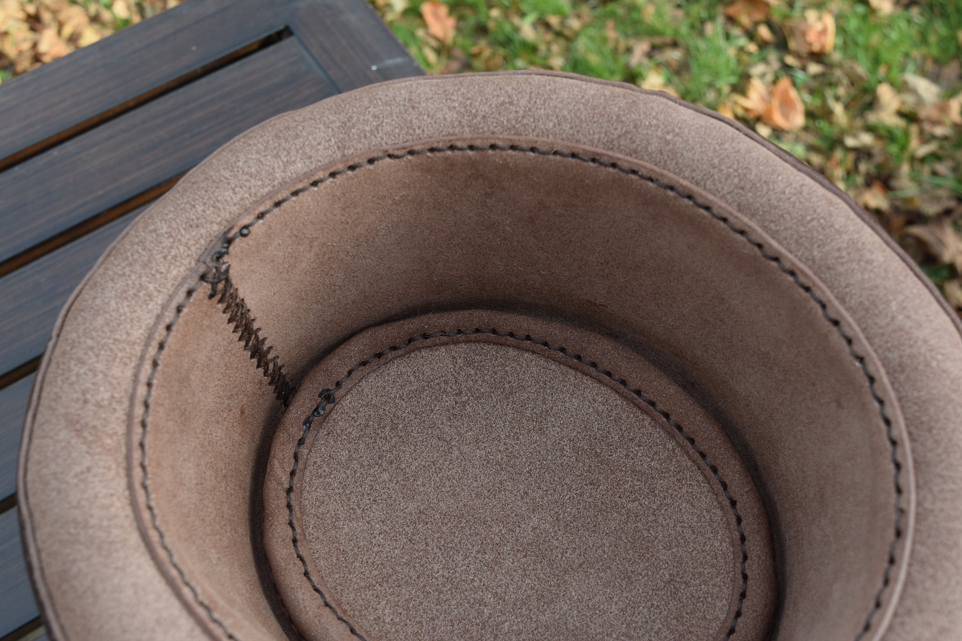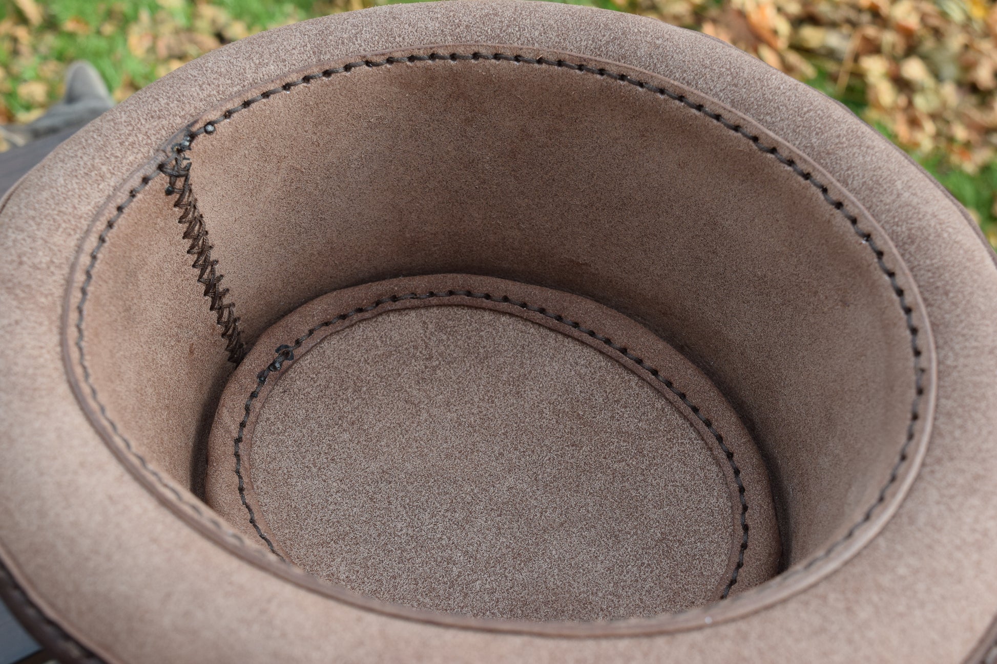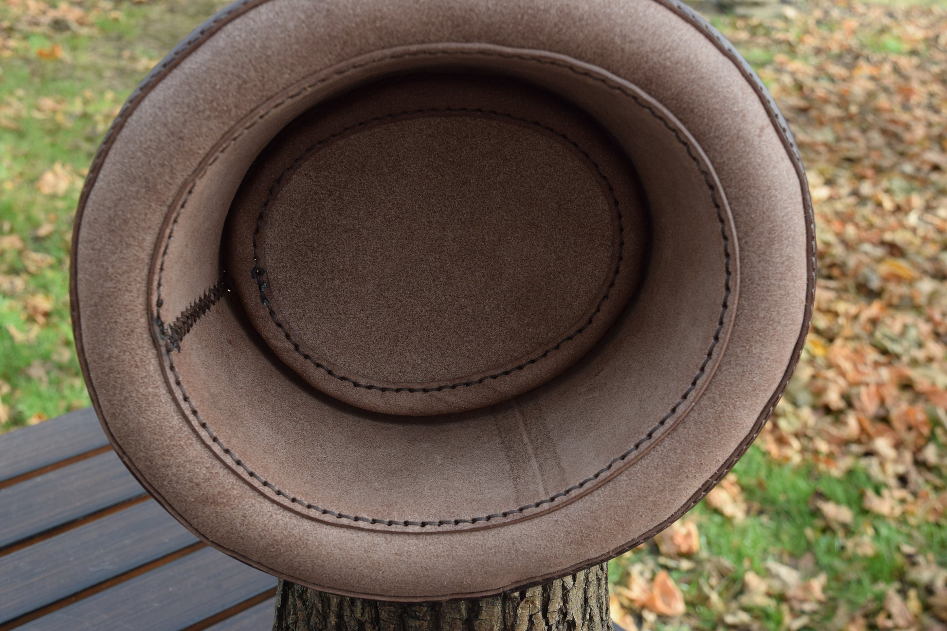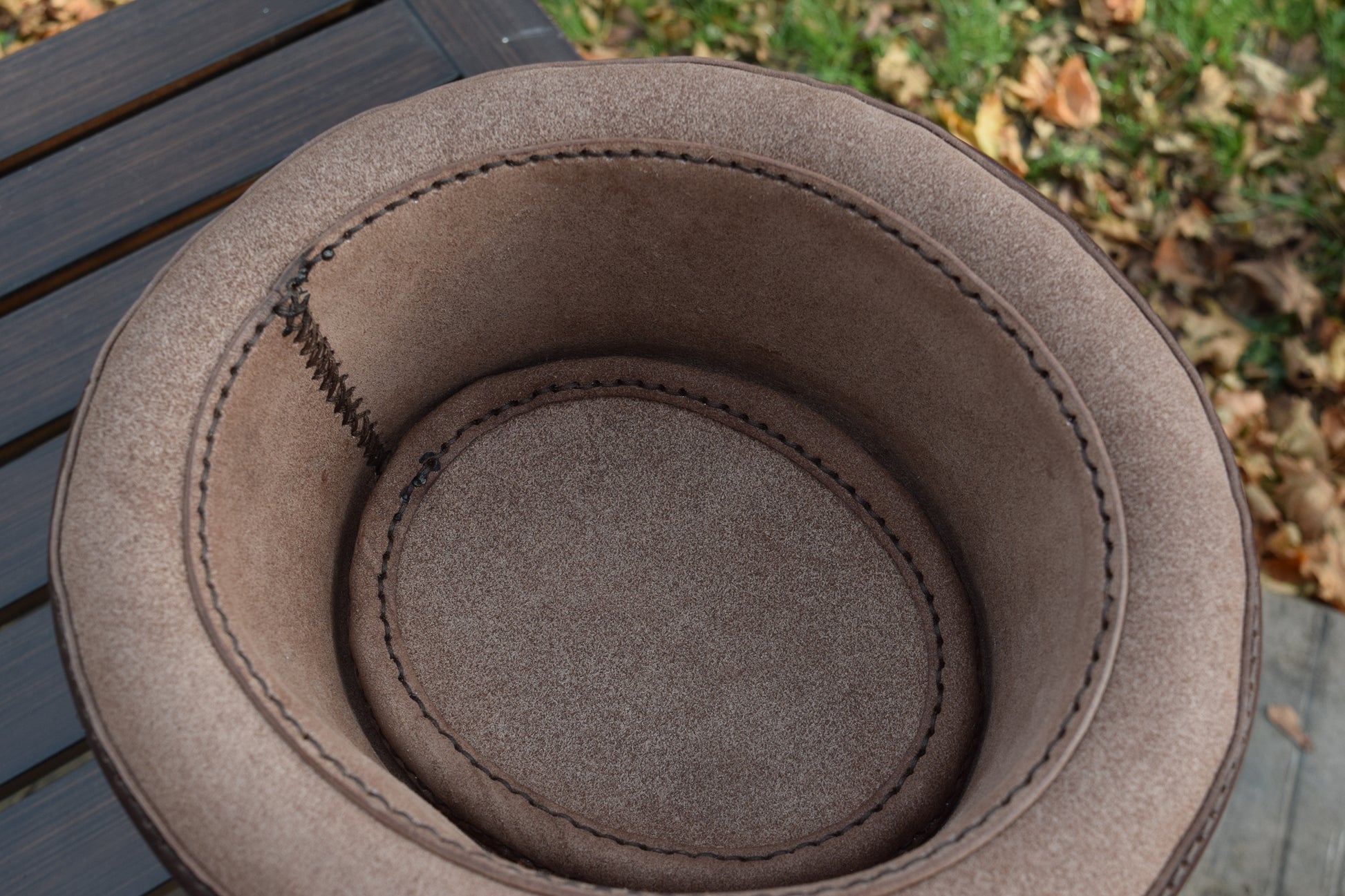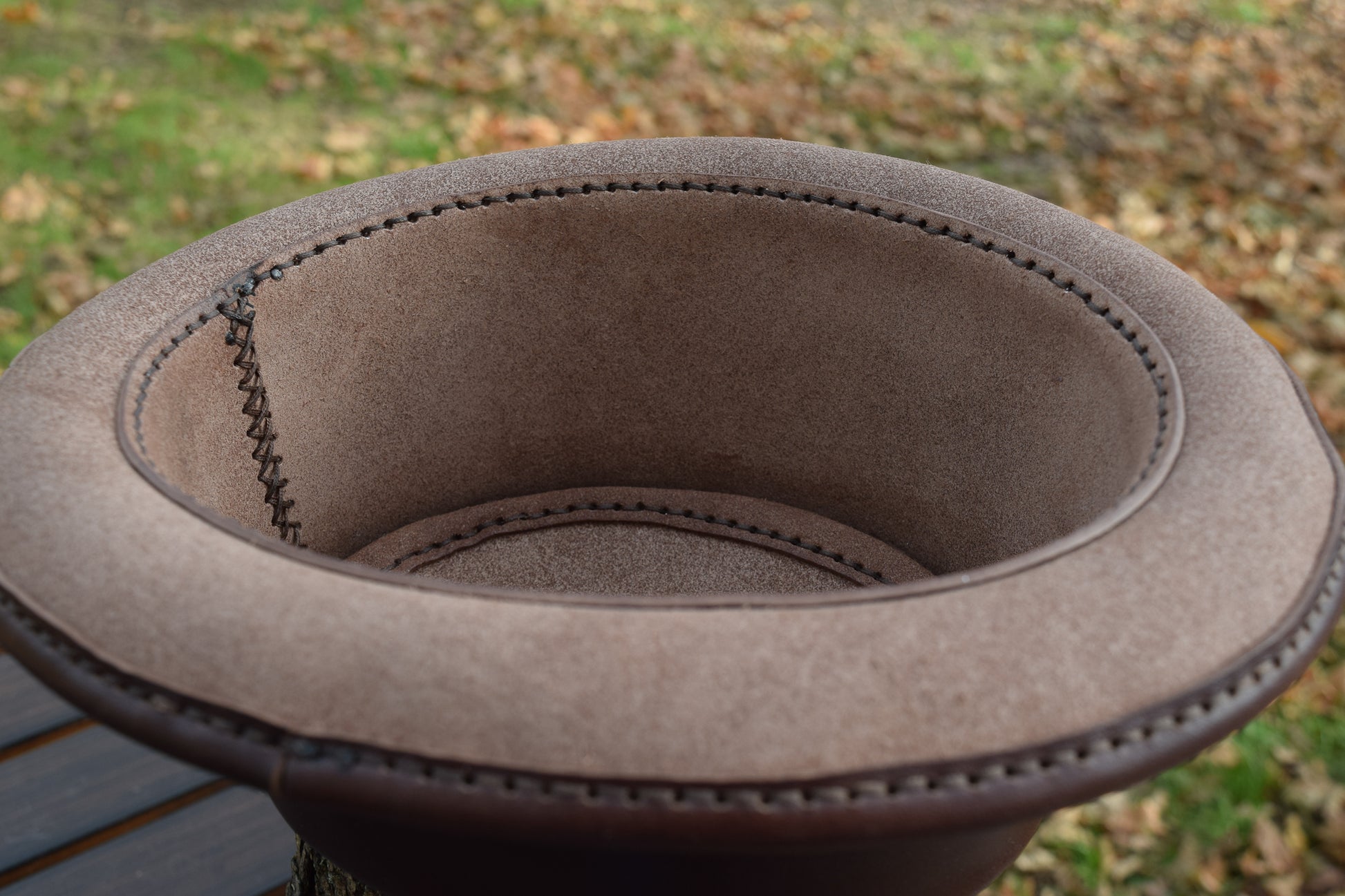This hat is made and shipped from Blairsville, Pennsylvania in USA. Created from luxe leather. We will use leather balm with atom wax as the finish. All our leather products are handmade and hand sewn.