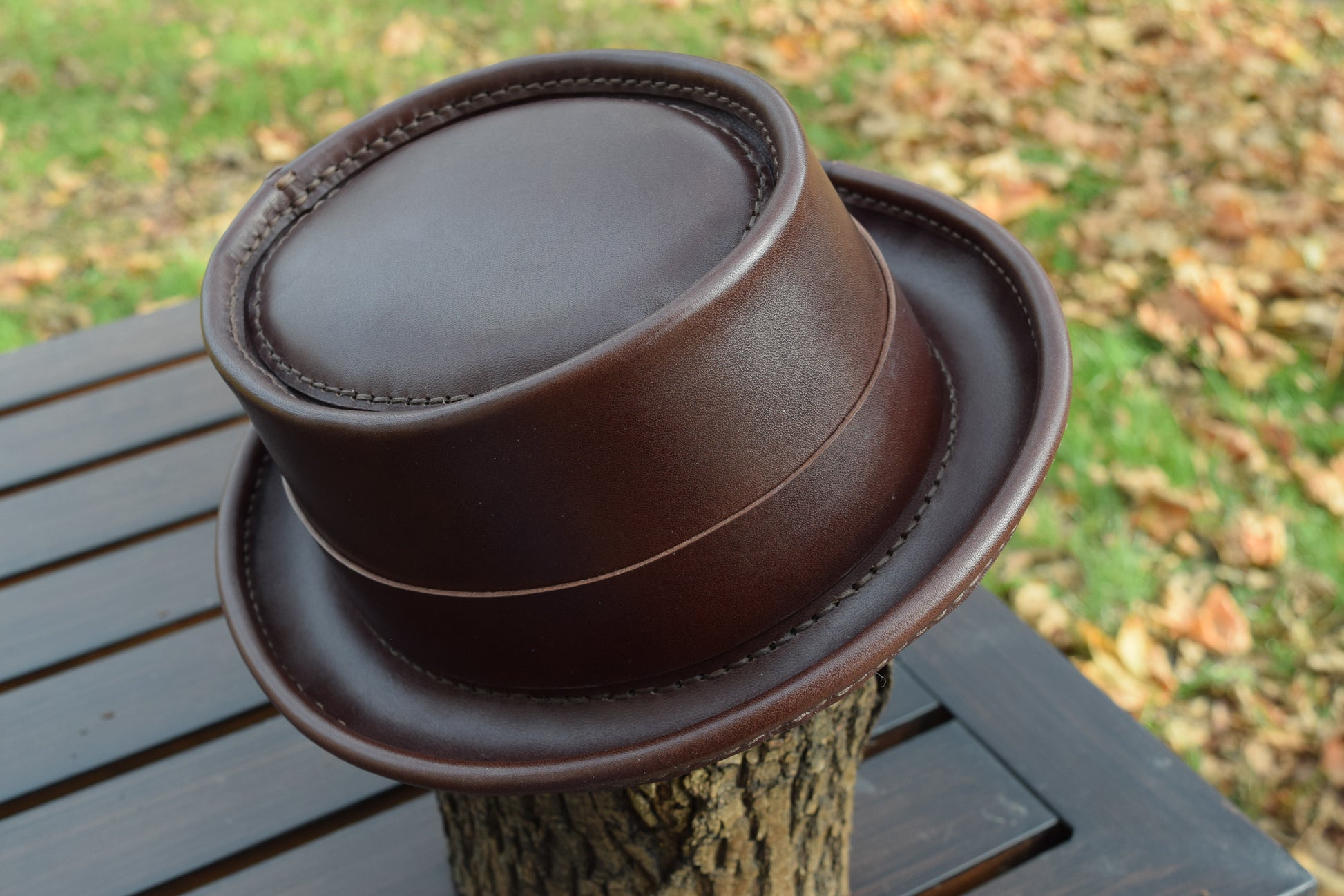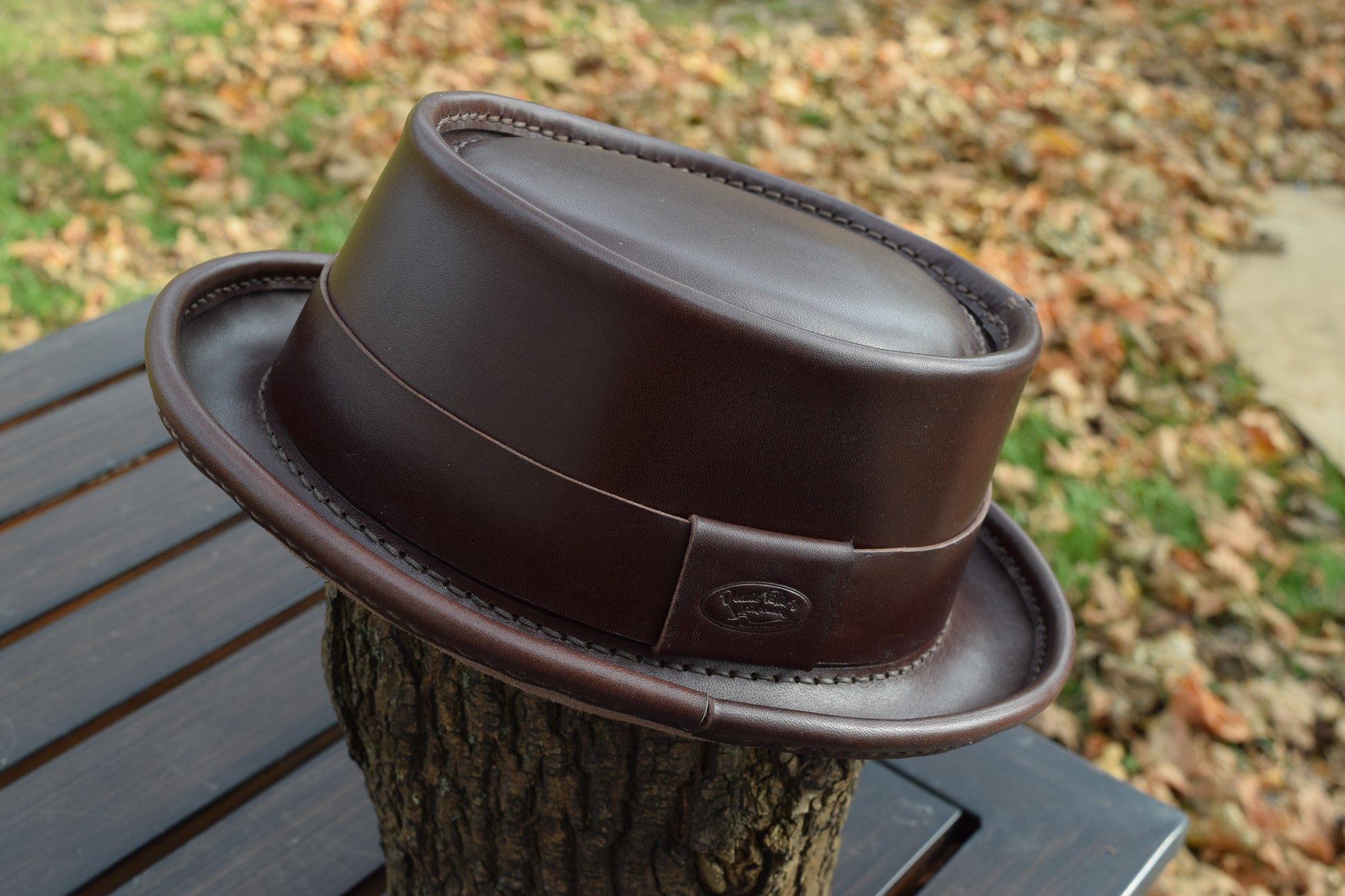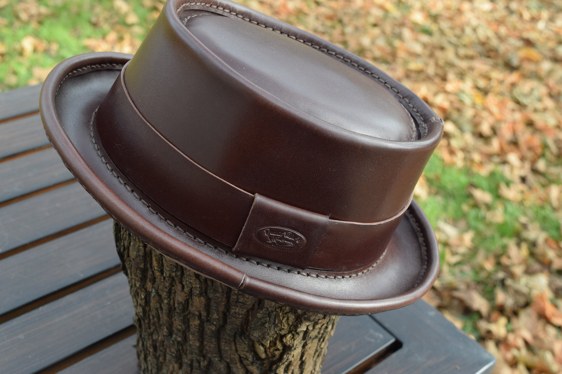 Pork Pie leather hat. Stylish and formal hat wear. A great hat for formal events.