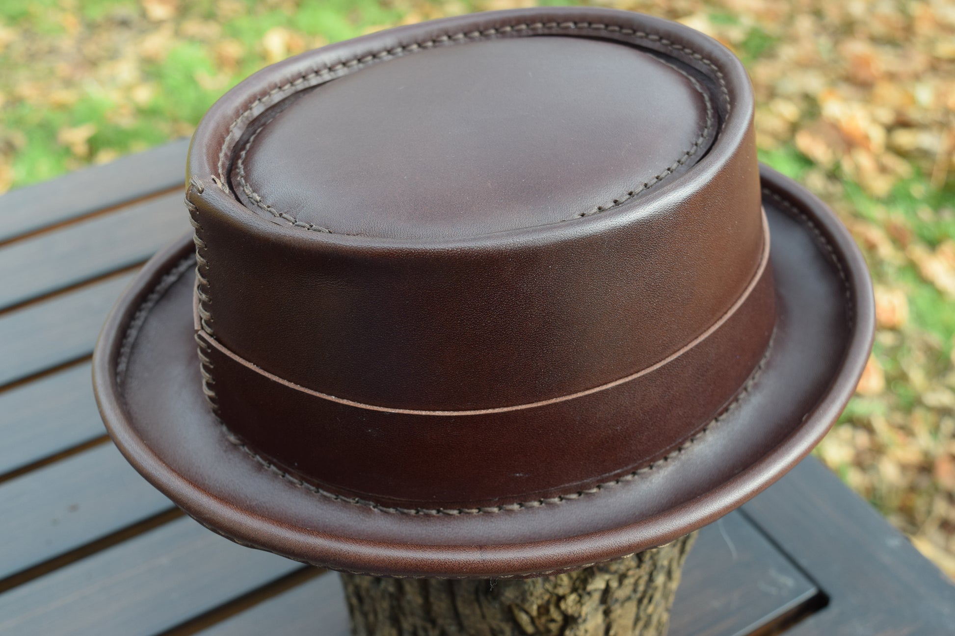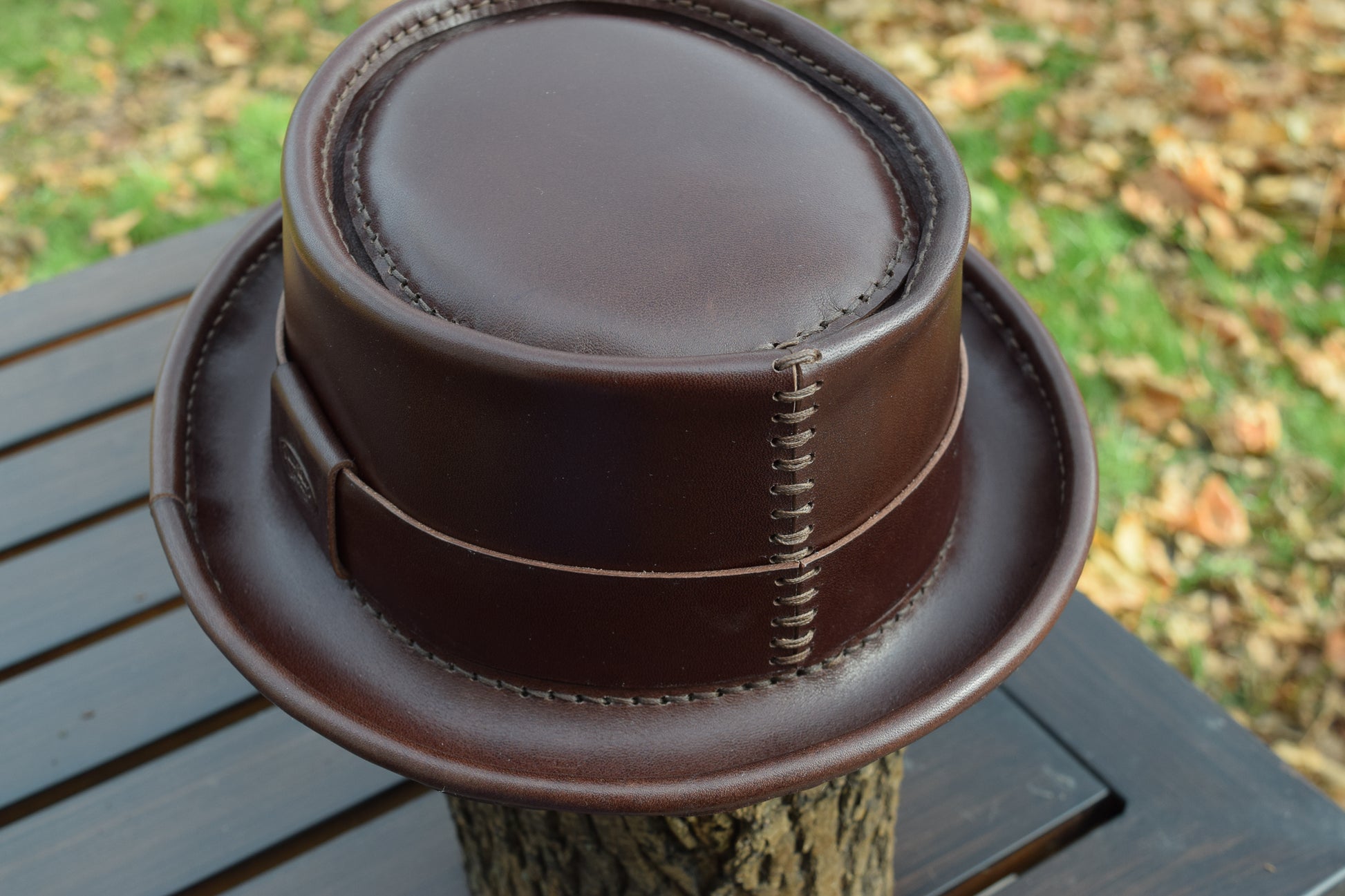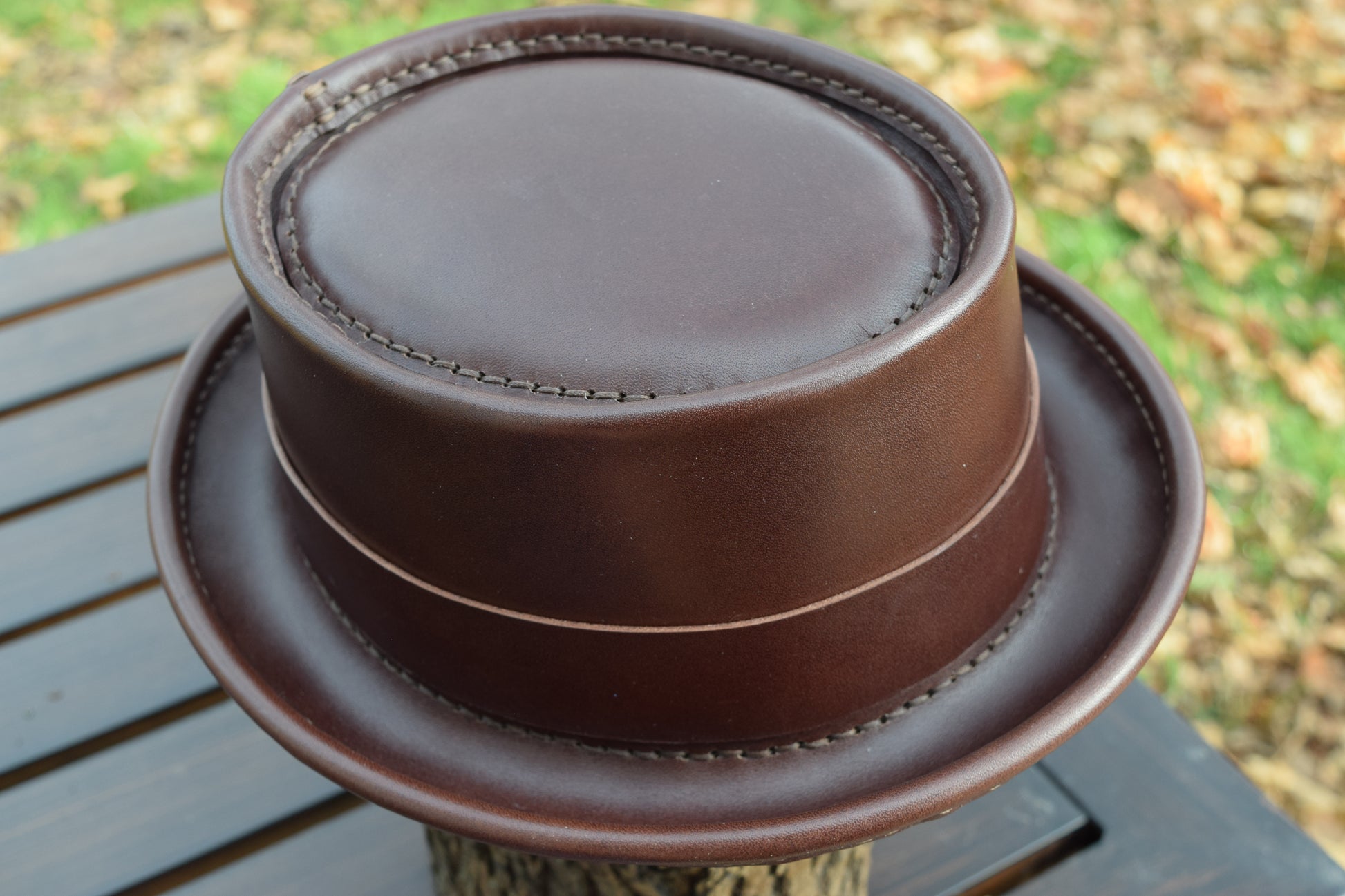 Pork Pie leather hat. Stylish and formal hat wear. A great hat for formal events.