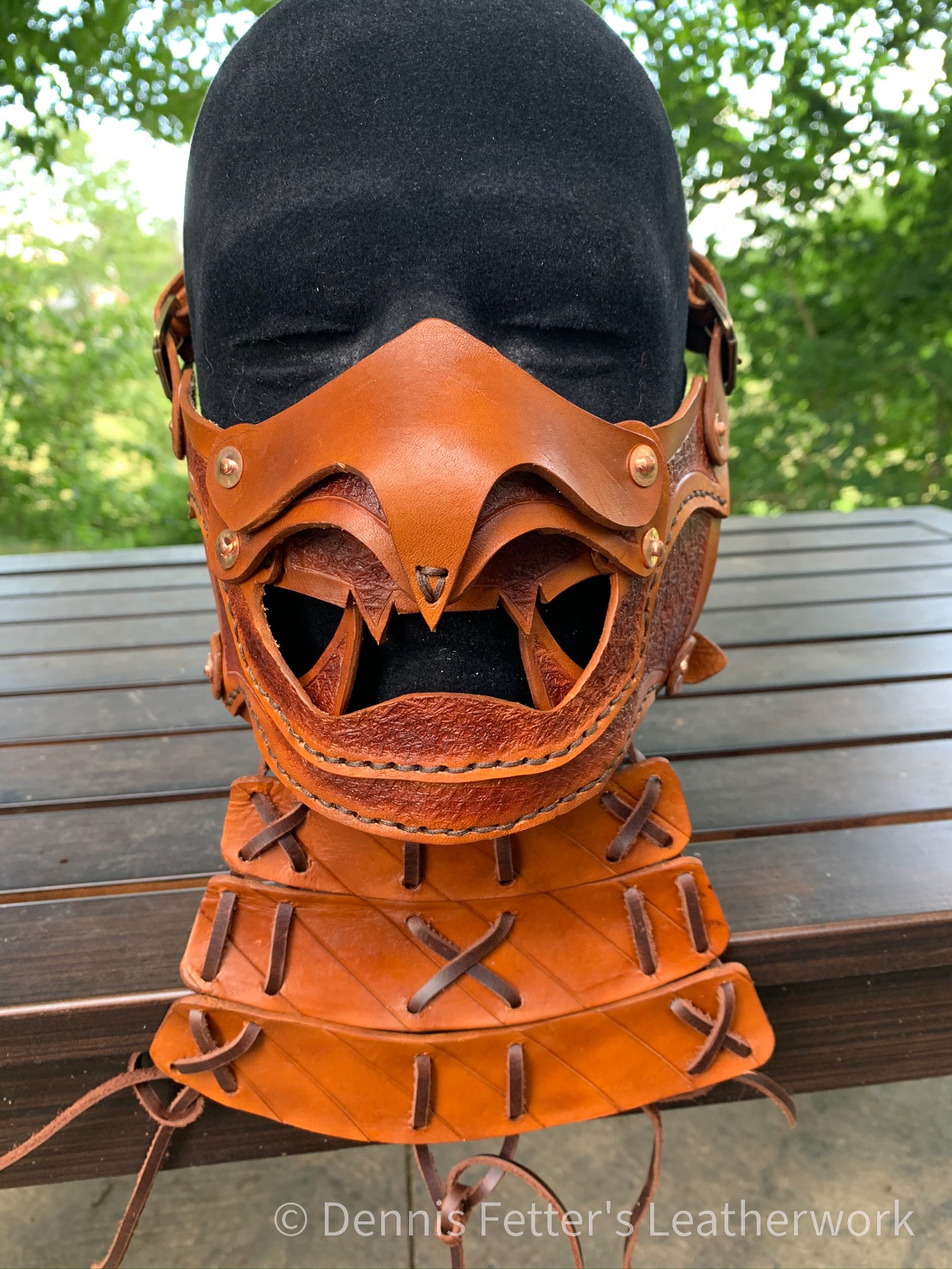 Stamped Leather Samurai Mempo mask - fits adults (Choose your color)