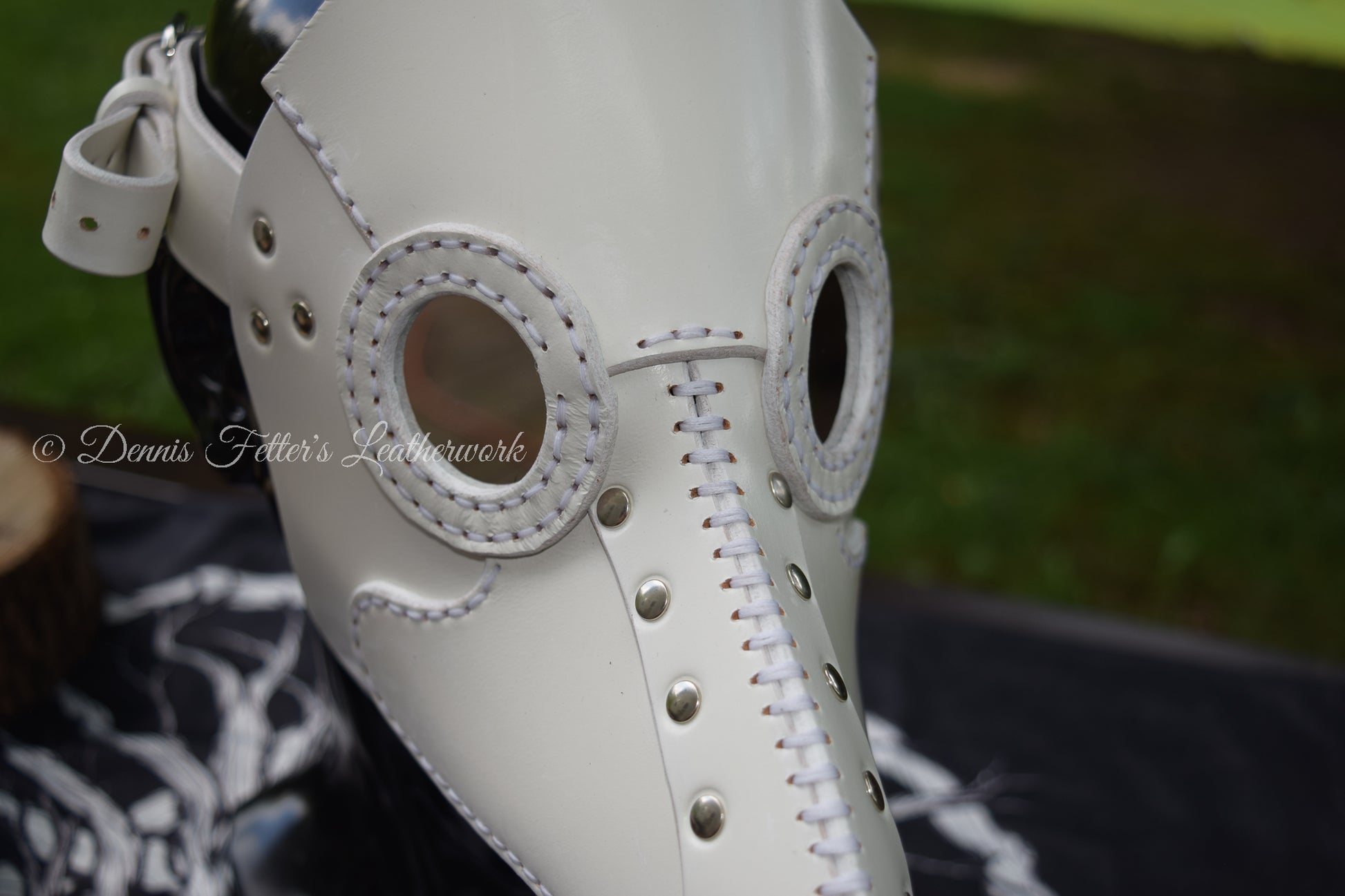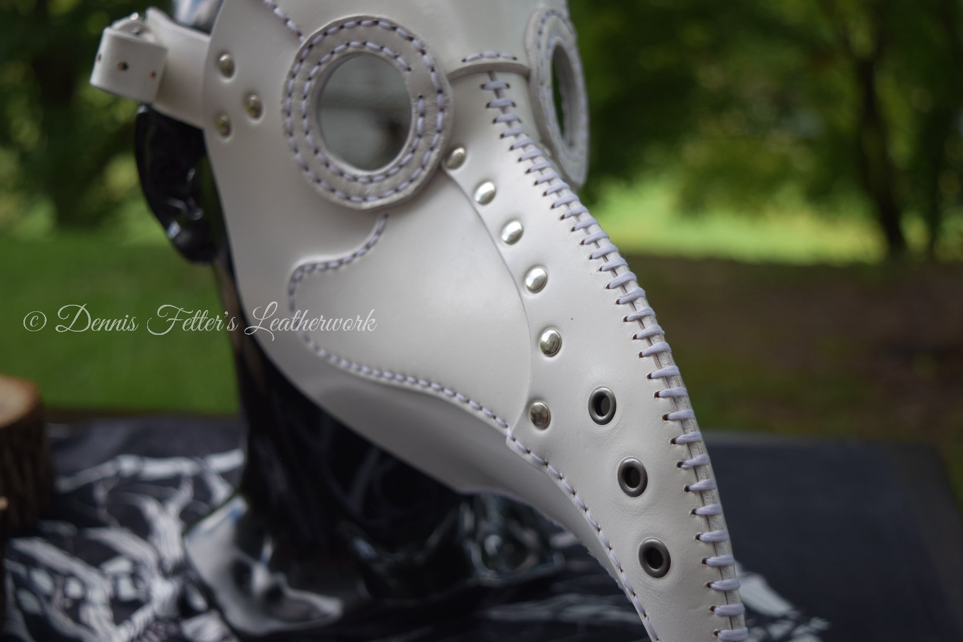 White Leather Plague Doctor mask - (Choose lens color)
