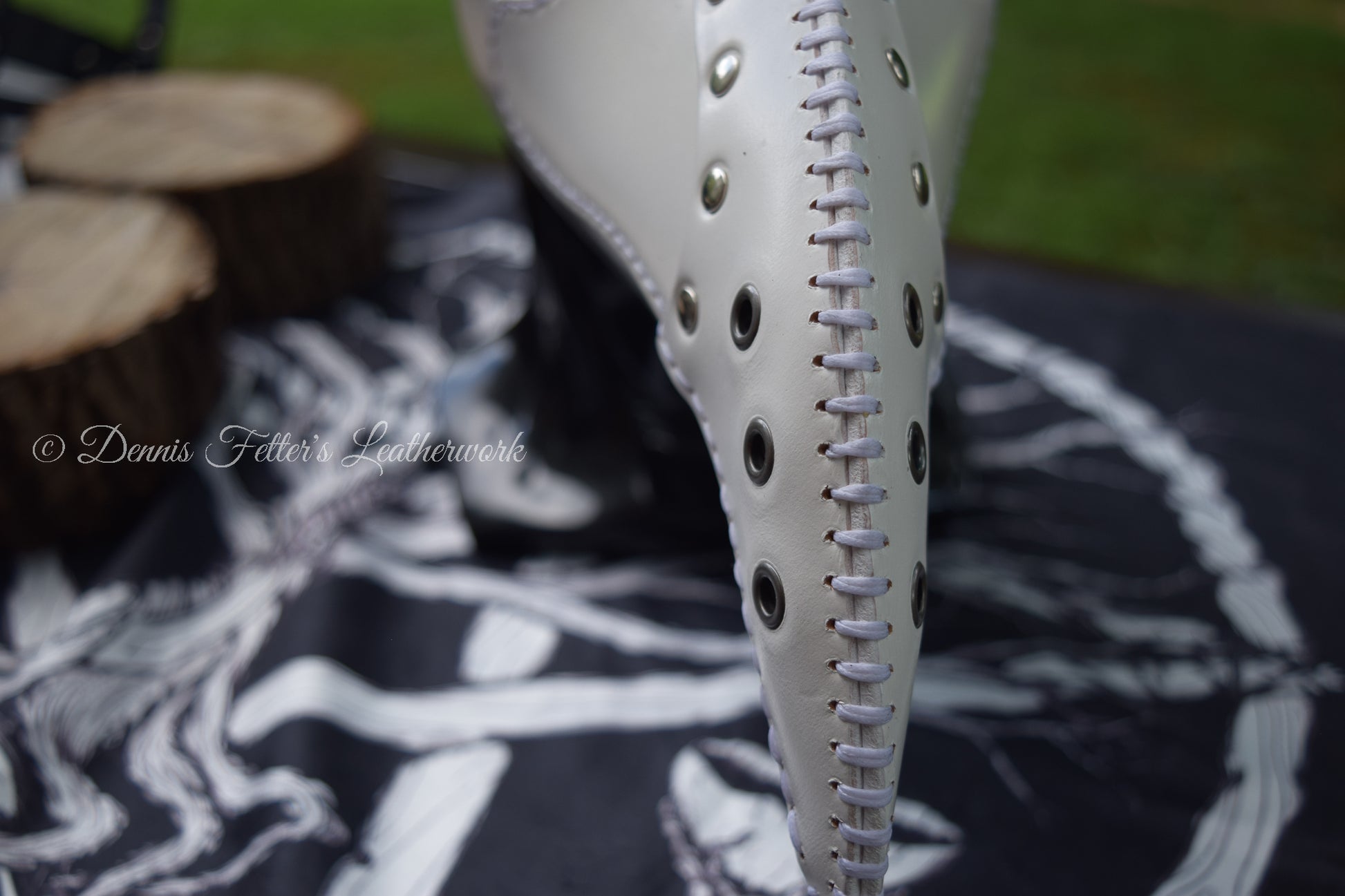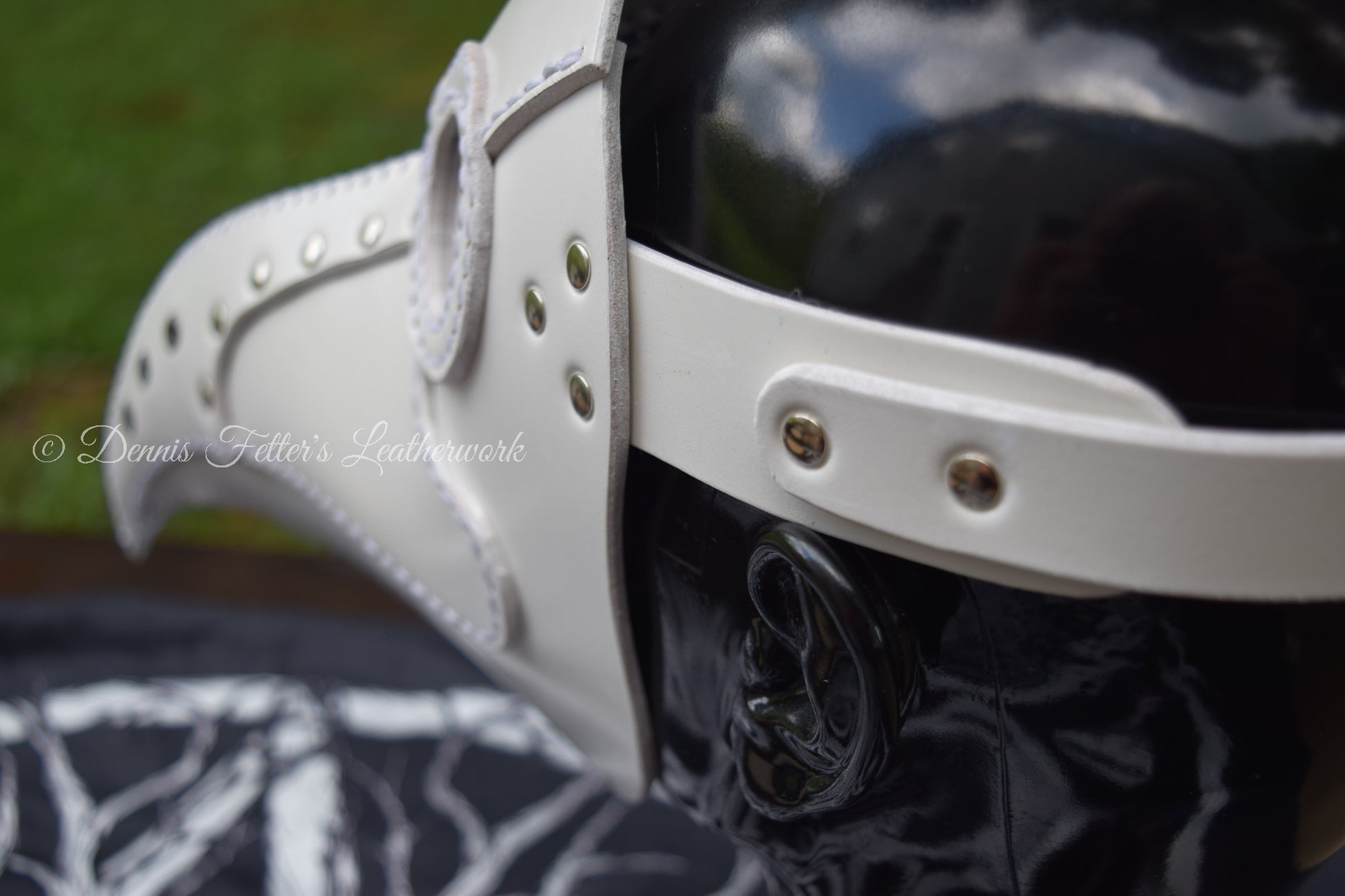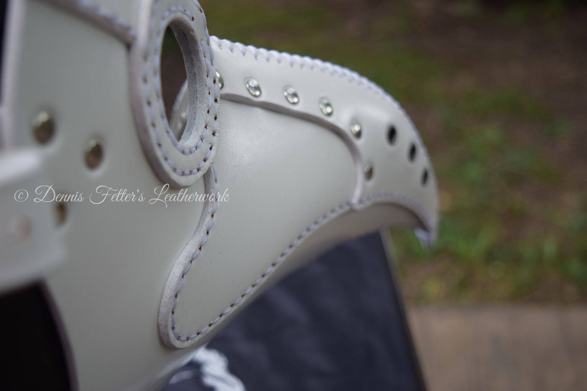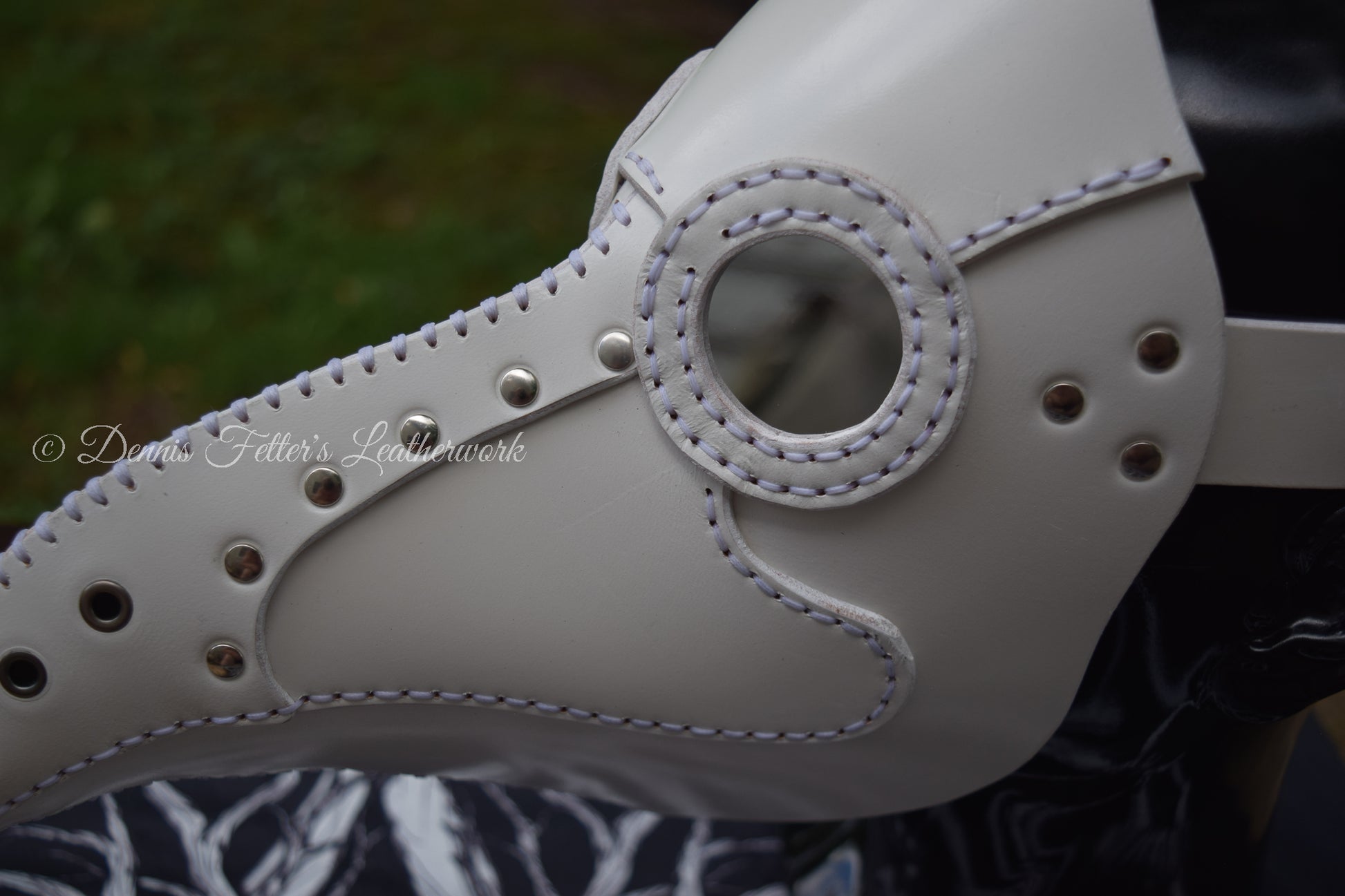 This white mask cannot be stamped or embossed because of the pigments in the leather. We make and ship the mask from Blairsville, Pennsylvania in USA. Created from 6 - 7 oz. (2.4 - 2.8 mm) full grain, vegetable tanned leather. All our leather products are handmade.